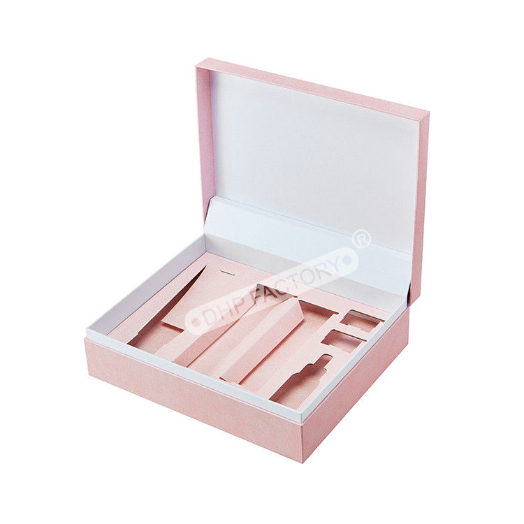 Custom Cosmetic Rigid Paper Box With Pink Flap Lid And Paper Insert