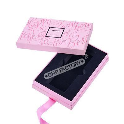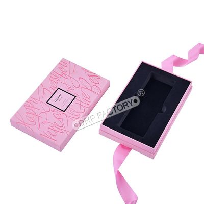 Custom Perfume Pink Two Piece Ribbon Box With Black EVA Tray Packaging Box